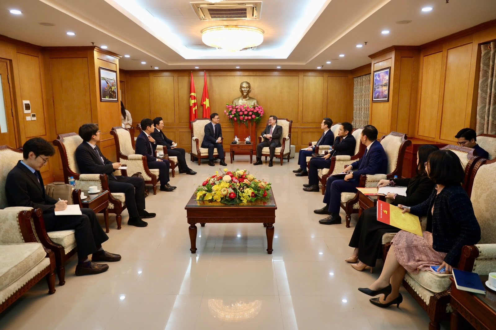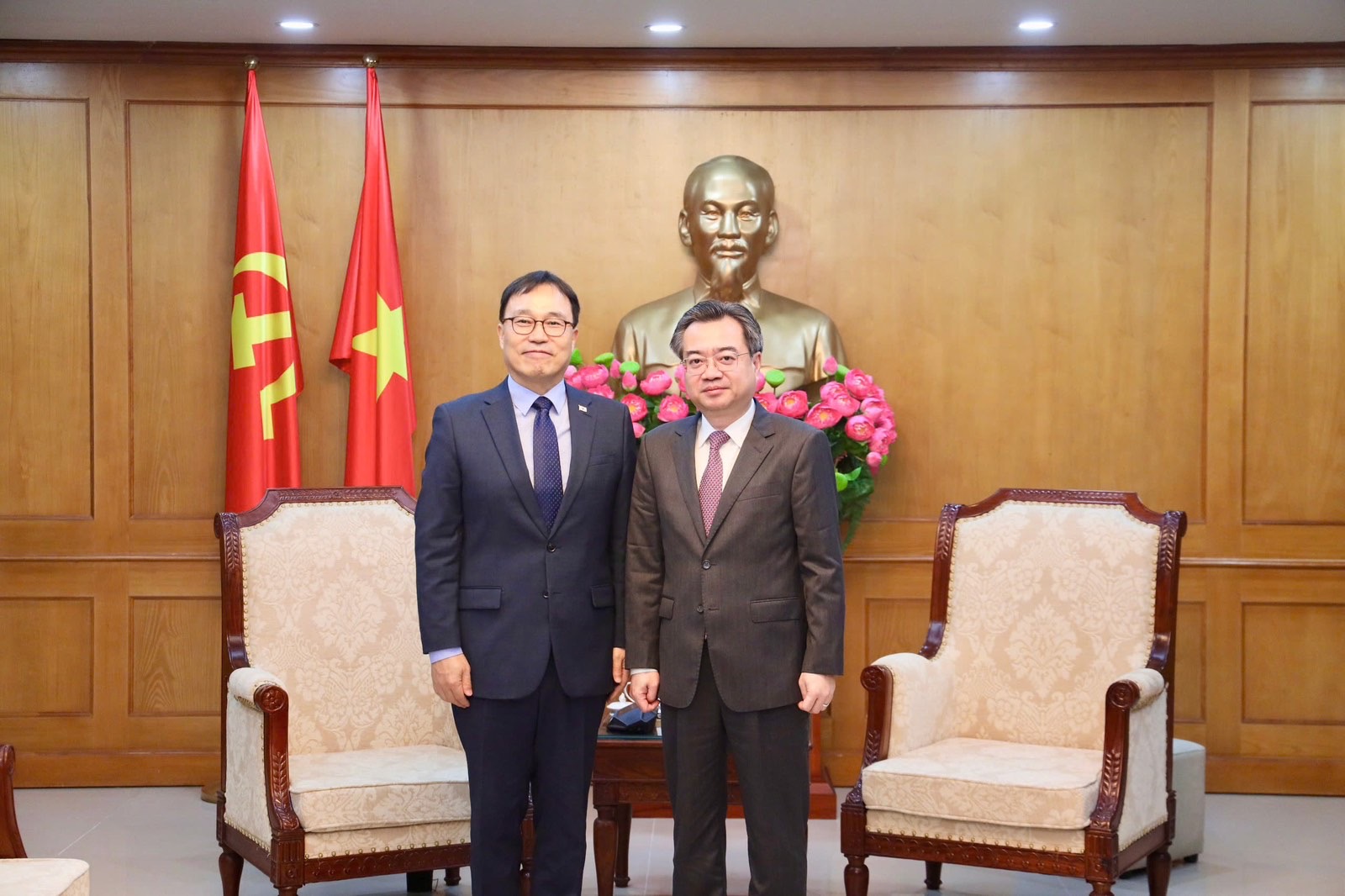 최 대사는 금년 8월 최임한 응이 위원장에게 축하 인사를 전하며, 과학기술, 첨단산업, 원전∙︎고속철도 등 메가 인프라, 핵심광물∙︎공급망 등 경제안보 분야 등에서 양국 간 협력이 더욱 심화∙︎확대되길 기대한다고 밝혔습니다. 이에 응이 위원장은 한국과의 협력을 환영하며 베트남은 한국과의 협력을 환영하며 베트남은 한국과의 포괄적 전략 동반자 관계를 더욱 발전시켜 나가기를 희망한다고 하였습니다.